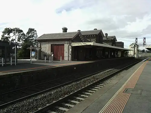 Kyneton railway station is a regional railway station on the Deniliquin line, part of the Victorian railway network. It serves the north-western suburb and town of Kyneton, in Victoria, Australia. Kyneton station is a ground level unstaffed station, featuring two side platforms. It opened on 25 April 1862.[2][3]