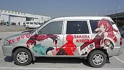 Merchandise inspired by the character, such as keychains, has been designed.[51][52] Figurines and nendoroids have also been produced.[53][54] Kyoko-themed accessories, clothing and other products have been manufactured,[55][56] and the character appeared on a poster for a Japanese guide dog-training organization.[57] Kyoko also appeared on cover of taxi in Sapporo,[58] as well as appearing in vending machines in the form of a doll.[59]
