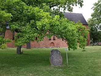 The Kyrkogården Runestones are three Viking Age memorial runestones located at the cemetery of St. Mary's Church in Sigtuna, Stockholm County, Sweden, in the historic province of Uppland. One of the runic inscriptions documents the existence of a Viking Age mercantile guild in Sweden.