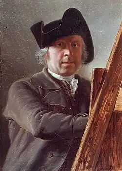 Léonard Defrance (French pronunciation: [leɔnaʁ dəfʁɑ̃s]), born at Liège in 1735, was a scholar of J. B. Coclers. He painted historical pieces of large and small dimensions, also landscapes, game, fruit, flowers, and architecture. He was the first professor of design at the Academy of Liège, established by the Prince Velbruck, and afterwards filled the same post in the École Centrale of the department of Ourthe. He died at Liège in 1805.