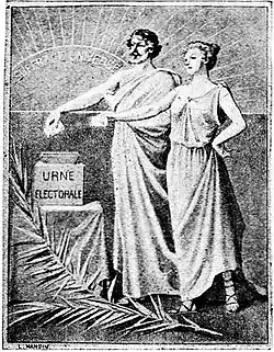 Léonie Rouzade, born Louise-Léonie Camusat (1839–1916) was a French feminist, politician, journalist and author. An active supporter of women's rights, in 1880 together with Eugénie Pierre, she founded the Union des femmes, the first socialist women's association in France. As a writer, in 1872 she published two novels: Le Monde renversé (The World Turned Upside Down) and Voyage de Théodose à l'île de l'Utopie (A Voyage to the Isle of Utopia).[1][2]