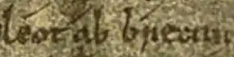 Léot of Brechin is the first known Abbot of Brechin. He appears in three charters. The first of these is a Scoto-Latin charter recorded in the notitiae on the Book of Deer, a charter which explicitly dates to "the eighth year of the reign of David" (1131) which styles him "Léot ab Brecini".[1] The second of these is a charter of King David I of Scotland, dated by Archibald Lawrie to 1150, granting the lands of "Nithbren" and "Balcristin" to Dunfermline Abbey, where he is called "Leod abbate de Breichin".[2] The third of these is a charter granted by King David to the church of St. Mary of Haddington dating to 1141 mentions a "Leod de Brechin".[3]