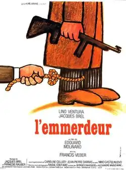 L'emmerdeur (literally The Troublemaker, with the English title of A Pain in the Ass, often promoted as A Pain in the A__[2][3]) is a 1973 French-Italian black comedy film, starring Jacques Brel, appearing in his tenth and final feature film. Directed by Édouard Molinaro and co-starring Lino Ventura, Caroline Cellier, and Jean-Pierre Darras, L'emmerdeur is an adaptation of Francis Veber's 1971 play Le contrat.