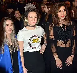 The members of L.E.J. in 2017 at the Globes de Cristal Awards ceremony. From left to right: Elisa Paris, Juliette Saumagne, Lucie Lebrun