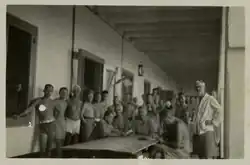Upon arriving in Batavia in 1931, Schoonheyt was first assigned to a post in Tanah Abang.[17] He soon became involved in campaigns to eradicate Malaria, and traveled with the northern light infantry of KNIL in more remote parts of the Indies, spending 1932 and 1933 working as a medic in the area around Boven Digoel.[18][19][20] He started to style himself an expert on conditions in Digoel and wrote articles and gave lectures about it in 1933 and 1934, many of which praised the camp and portrayed the internees as deeply flawed and deserving of punishment.[21][22][23][24][25] He got married in Weltevreden in December 1934.[26] He was also appointed head assistant at the Medical college in Batavia during this time.[9] It was in 1935 that he was made camp doctor at the Wilhelmina Hospital at the Boven-Digoel concentration camp.[3] He continued to send written accounts of his time there to newspapers and magazines in the Indies and in the Netherlands, accompanied by his photographs.[3] While working at the camp he was obsessed with creating an antiseptic environment which would reduce the spread of Malaria and other diseases.[3] He also conducted "Anthropological" and physical research on the internees and on local Papuans. Meanwhile he praised conditions in the camp as being better than the prisoners deserved, noting the musical orchestras, soccer teams, and other hobbies they could engage in.[27]