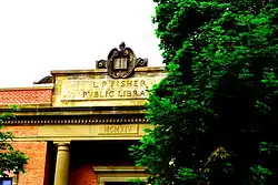 The L. P. Fisher Public Library, started in 1912 and completed in 1914, is a landmark in the town of Woodstock, New Brunswick, Canada. Named for Lewis Peter Fisher (1821-1905), a loyalist lawyer, mayor, and leading citizen of Woodstock who bequeathed $208,000 (a considerable sum in 1905) for local charitable purposes, including the construction of a free library.