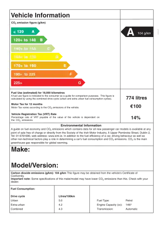- ^ Vehicle Labelling Archived 7 July 2008 at the Wayback Machine. Environ.ie (1 July 2008). Retrieved 21 September 2011.