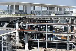 In 2018, 2,100 parking spaces in lot C were removed to reconfigure the area for the West ITF.[26] Utility relocation started in the second quarter of 2018.[6] Construction on the West ITF officially began in the summer of 2019[27] and ConRAC broke ground in September 2019.[28] The first large concrete pour for the APM occurred in September 2020 at the West ITF station.[29]