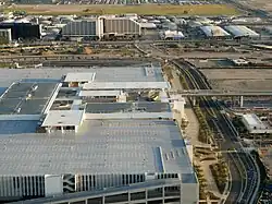 The Los Angeles International Airport Consolidated Rent-A-Car (LAX ConRAC) facility is one of the major components of the airport's US$5.5 billion Landside Access Modernization Program, along with the LAX Automated People Mover (APM).[1] The $1 billion facility will consolidate rental car operations currently spread across the Westchester neighborhood of Los Angeles. Before the construction of the ConRAC, these rental car companies operated 3,200 daily shuttle trips around the Central Terminal Area and on streets around LAX.[2]
