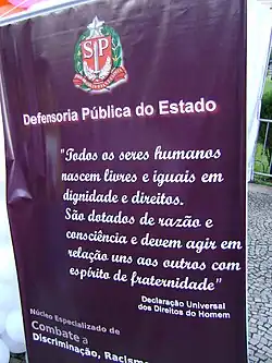 The São Paulo Law No. 10 948 went into effect on 5 November 2001, providing for penalties to be applied to the practice of discrimination on grounds of sexual orientation and other measures.[8][9][10]