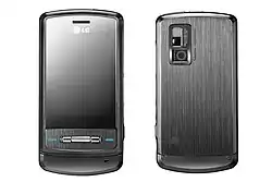 The LG Shine[1] (a.k.a. SV420, KE970, KG970, KU970, ME970, U970, CU720, TU720, KG70, L705iX[2]) is a slider-style mobile phone manufactured by LG Electronics, the second installment of LG Black Label Series, followed by LG Secret. It was originally introduced as the LG Cyon SV420 in the Asian market in November 2006,[3] and debuted for other regions in February 2007.[4] The LG Shine is similar to the LG Incite.