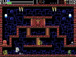 Most non-boss enemies in the game will not cause a lot of damage to the protagonist, however there are very few ways to restore life, and in many cases getting hit will cause the protagonist to fall off a hard-to-reach ledge and lose progress. An item in the game is available early on that enables teleportation back to the start (the location of the game's only save point) in addition to various waypoints. As explained in the game's manual, the general strategy of the game is to explore and solve as many puzzles as possible before getting low on life and teleport back when the risk of death becomes too great. However, actions taken in certain rooms can make it very difficult to return after warping out, so warping out is not always the wise action.