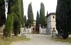 In 1924, writer Iris Origo, granddaughter of William Bayard Cutting and Hamilton Cuffe, 5th Earl of Desart, joined Antonio Origo, son of Marchese Clemente Origo in buying the dilapidated estate. They moved there after their marriage.[2] The late 15th-century villa was restored by the Origos in the 1920s with government financial assistance.[3][4] The fine gardens were designed by the English architect Cecil Pinsent[5] – "the last great Italian garden by Pinsent" in the words of horticulturist television presenter Monty Don.[6][7] Pinsent had created several other gardens in Tuscany, including those at Villa Le Balze and Villa I Tatti, where Iris's mother was a frequent guest of Bernard Berenson, who had commissioned Pinsent's first Italian garden about twenty years earlier.