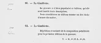 - ^ Gazette des Beaux-Arts – Courrier Européen de l’Art et de la Curiosité: La Collection Walferdin et ses Fragonard, vingt-deuxième année – deuxième période, tome vingt et unième, 8, Rue Favart, Paris, 1880, p. 308 [the article mentions only one version of La Gimblette in the collection. Judging by the description, the article is about the Munich version. However, the article speaks of a replica, but of a replica by Jean-Honoré Fragonard]