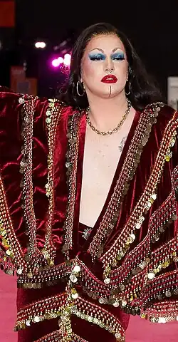 La Kahena is the stage name of Malek Ben Halima,[1] a Tunisian-French drag performer who competed on the first season of Drag Race France, where she was eliminated first.[2][3][4] She returned to compete on the second season of Canada's Drag Race: Canada vs. the World[5] where she was once again eliminated first, becoming the first contestant in Drag Race history to be eliminated first in two different seasons.