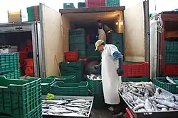 While by far most of the businesses inside sell fresh and frozen fish, there are other businesses selling kitchen supplies and groceries, and even banks.[1][6] Outside there is some public transportation and freight services.[6]