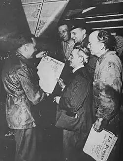 As the first daily to be published in liberated France, it bore the subtitle Premier quotidien à paraître en France libérée and was named La Presse cherbourgeoise. Founded on July 3, 1944, its leadership was entrusted to Daniel Yon, who was approved by the Resistance. He was assisted by Maurice Hamel.[1][2]
