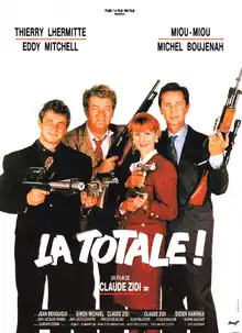 La Totale! (English: The Total, a French expression roughly meaning "the whole nine yards") is a 1991 French spy comedy film directed by Claude Zidi and starring Thierry Lhermitte, Miou-Miou, Eddy Mitchell and Michel Boujenah. It centers on a spy (Lhermitte) who lives a double-life as an ordinary white collar worker, with his family unaware of his true identity. Meanwhile his wife (Miou-Miou), bored by their monotonous life, begins an affair with a con artist pretending to be a spy (Boujenah).
