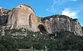 La Ventana Natural Arch is a natural arch in Cibola County, New Mexico, United States.[2] It is the second-largest natural arch in New Mexico and is situated in El Malpais National Conservation Area which is managed by the Bureau of Land Management.[3] The arch is composed of Zuni Sandstone which was deposited as desert aeolian sand dunes about 165–175 million years ago, during the middle Jurassic period.[4] Access is from Highway 117 and a 1/4 mile trail which transitions from paved to primitive as it enters the Cebolla Wilderness.[5] This landform's toponym was officially adopted in 1989 by the U.S. Board on Geographic Names when it replaced the name "Alta Arch."[2] The name La Ventana is a Spanish term, meaning "the window."