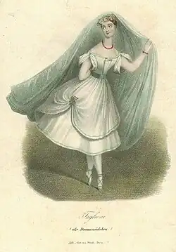 La Fille du Danube was choreographed and produced by Filippo Taglioni for his daughter, Marie Taglioni, the creator of the title role and was premièred on 21 September 1836 by the ballet of the Académie Royale de Musique, Paris. Like his 1832 ballet La Sylphide, La Fille du Danube focused on the romantic theme of a supernatural maiden, but with both inhibiting a different element - the Sylph is a maiden of the air, while the Daughter of the Danube is a maiden of the water.