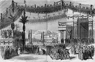 La reine de Saba (The Queen of Sheba) is a grand opera in four or five[1] acts by Charles Gounod to a libretto by Jules Barbier and Michel Carré inspired by Gérard de Nerval's La Reine de Saba, in Le voyage en Orient. It was premiered at the Salle Le Peletier by the Paris Opera on February 28, 1862. The magnificent first production was directed by Eugène Cormon, with costumes designed by Alfred Albert and Paul Lormier, and scenery by Édouard Desplechin (Act I), Charles-Antoine Cambon and Joseph Thierry (Acts II and IV, scene 2), Hugues Martin (Act III), and Joseph Nolau and Auguste Alfred Rubé (Act IV, scene 1).