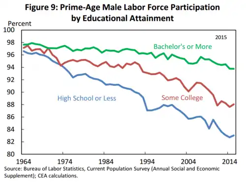 - ^ "White House Council of Economic Advisors-The Long-Term Decline in Prime-Age Male Labor Force Participation-June 2016-Page 13" (PDF). whitehouse.gov. Retrieved 4 October 2017 – via National Archives.