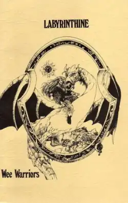 Labyrinthine is a two-player game that was designed by Pete and Judy Kerestan. The cover art was created by Brad Schenck using his pseudonym "Morno".[1] The first printing published by Wee Warriors featured an orange cover. A second printing used the same artwork on a yellow cover but used a more professional title font and added the words "Wee Warriors".[2]