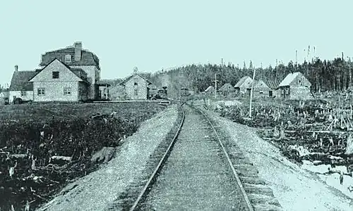 Located on a point of land jutting out into the Lac Edouard, the site of the sanatorium and outbuildings was well equipped. The natural setting, on the edge of the lake, attracted beneficiaries, generally wealthy. They arrived by train at the Lac-Edouard railway station by train, from Hervey-Jonction, Quebec or Chambord. A shuttle was required between the railway station and the sanatorium. Many visitors were coming by train to see their sick relatives or friends living at the sanatorium. Many beneficiaries of the sanatorium died there during its history.[5]