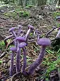 - ^ a b Vincenot L, Popa F, Laso F, et al. (2017). "Out of Asia: Biogeography of fungal populations reveals Asian origin of diversification of the Laccaria amethystina complex, and two new species of violet Laccaria". Fungal Biology. 121 (11): 939–955. doi:10.1016/j.funbio.2017.08.001. PMID 29029701.