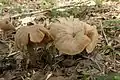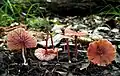 Laccaria is a genus around 75 species of fungus found in both temperate and tropical regions of the world.[1][2] They are mycorrhizal. The type species is Laccaria laccata, commonly known as the deceiver. Other notable species include L. bicolor, and the amethyst deceiver (L. amethystina), sometimes incorrectly written as L. amethystea. Because some Laccaria species have the ability to grow vegetatively and/or germinate from basidiospores in culture, they are often used as experimental systems for studies of ectomycorrhizal basidiomycetes.[3] They have a tetrapolar mating system, meaning that there the mating type is controlled by 2 loci. Recently, the genome of L. bicolor has been sequenced.[4]