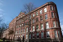 The local hosiery industry employed 25,000 mostly female workers at its peak in the 1890s. The lace would be finished on the top floors of the large Victorian brick-built warehouses, which are recognisable by their large windows, and then displayed in the downstairs showrooms to buyers from the fashion and domestic furnishing businesses.[5]