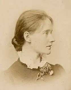 Ellen Wordsworth Darwin was a cousin of Henry Sidgwick who had taught English literature at Newnham from 1878 until 1883, but had given it up after her marriage to the botanist Francis Darwin and the birth of their daughter Frances.[1] She was strongly agnostic and took her discussions seriously, a friend observing "It was at once distracting and delightfully amusing to hear her say, as she not infrequently did, 'I know I’m right'".[5]