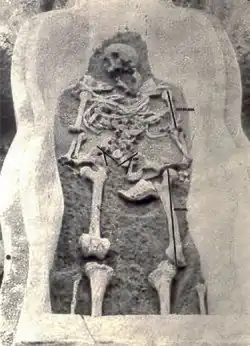 Human remains found in the male sarcophagus, 1 June 1887. -