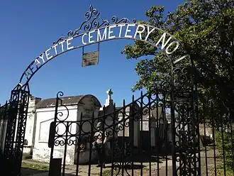 - ^ "Save Our Cemeteries : Cemeteries of New Orleans : Cemeteries : Lafayette No. 1". www.saveourcemeteries.org. Retrieved November 14, 2018.