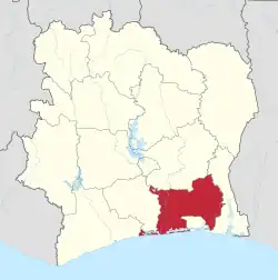Lagunes District (French: District des Lagunes, pronounced [distʁikt de laɡyn], lit.'Lagoons') is one of fourteen administrative districts of Ivory Coast. The district is located in the southern part of the country. The capital of the district is Dabou.