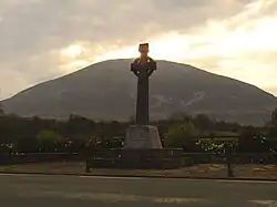 ![]() ![]() Top: A section of the Titanic Memorial Park. Bottom: A Celtic Cross commemorating Father Andrew Conroy who was hanged for taking part in the 1798 United Irishmen Rebellion. In the background, the mountain known as Nephin | |
