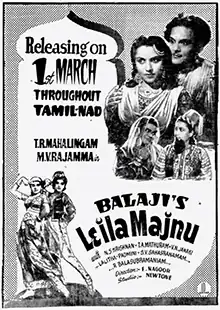 - ^ "1950 – லைலா மஜ்னு – பாலாஜி பிக்சர்ஸ்" [1950 – Laila Majnu – Balaji Pictures]. Lakshman Sruthi (in Tamil). Archived from the original on 24 May 2017. Retrieved 28 September 2019.
