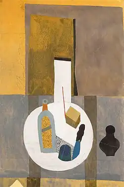 "In all his still-lifes from 1934, Vajda benefits from the results of a cubist approach. He turns space into a plane. The "self-containedness" of the picture is so intimate that, instead of a still-life, we seem to be given a glimpse into a hermetically sealed world. Yet the painting's methodically constructed, compact unity exudes the harmony of life. This, apart from other factors, is also due to two compositional features. The first one is the simultaneous inclusion of all possible viewpoints of the topic, the second one is that the planes that form the background of the picture tend to be involuntarily lengthened in the imagination."[24]