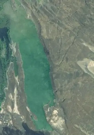 The first European to visit Lake Afambo was Wilfred Thesiger, who explored the course of the Awash to its ultimate ending point in 1935. Thesiger led his party along the eastern and southern sides of this lake.[2] This area did not see another visitor from outside Ethiopia until Pele Thompson retraced Thesiger's steps in May and June 2001. There had been a bridge over the channel linking lakes Gummare and Afambo at Ebobe, but it had "collapsed some time ago." Further, while Lake Afambo had been a fresh water lake when Thesiger visited in, it has since become very saline due to the amount of water diverted upstream for irrigation purposes.[3]