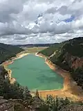 Lake Aguelmam Azegza (in Central Atlas Tamazight: ⴰⴳⵍⵎⴰⵎ ⴰⵣⴳⵣⴰ[1]) is a natural lake in Morocco covering an area of 40 hectares and reaching a depth of 25 metres (82 ft). It is situated in the village of Aguelmam Azegza at an altitude of 1,500 metres (4,900 ft) above sea level.[2] The community takes its name from the lake, which is named after the Amazigh people and translates as the green lake. The lake is located in the Khénifra Province of the Béni Mellal-Khénifra region, approximately 30 kilometres (19 mi) from the city of Khénifra in the western Middle Atlas.[3] The lake is renowned for its considerable influx of tourists during the summer months.[4]