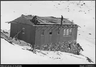 Lake Albina Ski Lodge was built overlooking Lake Albina in the Kosciuszko National Park of Australia, by The Ski Tourers Association, (later renamed The Australian Alpine Club).[1] In 1952 the first Albina Summer Slalom Cup was held, taking advantage of the seasonally unusual snow conditions.[2] Summer time ski events continued for at least another 3 years on either Mount Kosciuszko or Mount Townsend.[3] The National Parks and Wildlife Service (NPWS) required the club to vacate the lodge in 1969, and it gradually became a ruin. It was finally demolished by NPWS in 1983 .