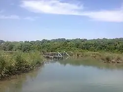 Lake Antiniotissa or Antinioti (Greek: Λίμνη Αντινιώτισσα/Αντινιώτη), sometimes known as Antinioti Lagoon, is a small brackish lake on the north-east coast of Corfu, Greece near Agios Spyridon beach. It is an important wetland area[1] and lies within a Natura 2000 nature protection area[2] of 188 hectares (460 acres)[3] at the western edge of the municipal unit of Thinali. The lake's Greek name translates into English as "the enemy of youth". It was once a malarial swamp and home to the anopheles mosquito,[4] resulting in the area being uninhabited for many centuries, and it is still comparatively undeveloped. The vegetation surrounding the lake includes thickets of reed and bamboo. Inland there are orchards, olive groves and farmland, while between the lake and the sea lie sand dunes. The lake is jointly owned by the twelve principal villages of north-eastern Corfu and leased for fish farming, producing flathead grey mullet, sea bass and eel. It is also used for duck hunting.[5] The adjacent dunes are home to the sand lily (pancratium maritimum) and the agile frog (rana dalmatina).[6] The lake as it was in the 1930s was described by the British naturalist Gerald Durrell in his childhood autobiography My Family and Other Animals, in which it was called the "Lake of Lillies".[7] Durrell wrote that:[8]
