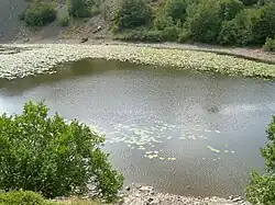 Part of the lake's surface is covered with yellow water lilies (Nuphar lutea). The lake is home to trout and carp, and there are also specimens of grass snake. The shores are populated by frogs.