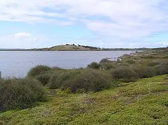 Lake Connewarre State Wildlife Reserve is situated on the lower reaches of the Barwon River on Victoria's Bellarine Peninsula, approximately 8 km south-east of Geelong and 65 km south-west of Melbourne. The Reserve holds the largest area of remnant vegetation on the Bellarine Peninsula and contains the most extensive example of Wilsonia herblands and Distichlis grasslands in Australia.[2] As well as the saline and tidally affected Lake Connewarre itself, the reserve includes the adjacent freshwater Reedy Lake and the ephemeral Murtnaghurt Lagoon. Part of LCSWR is designated a State Game Reserve and is available for duck and quail hunting each year. Other recreational uses include fishing, windsurfing, canoeing and nature study.