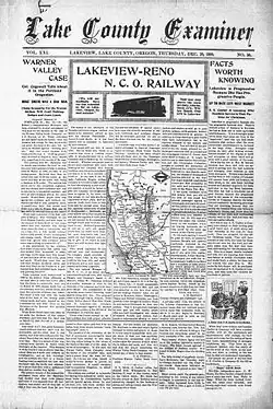 - ^ a b c d e f g h Rabun, Sheila, "Lake County Examiner", Historic Oregon Newspapers, Oregon Digital Newspaper Program, University of Oregon Libraries, Eugene, Oregon, July 15, 2014.