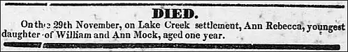- History of the Lake Creek Settlement