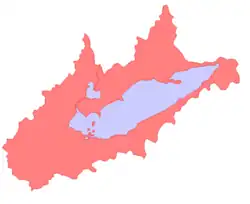 Lake Erie Basin consists of Lake Erie and surrounding watersheds, which are typically named after the river, creek, or stream that provides drainage into the lake. The watersheds are located in the states of Indiana, Michigan, New York, Ohio, and Pennsylvania in the United States, and in the province of Ontario in Canada. The basin is part of the Great Lakes Basin and Saint Lawrence River Watershed, which feeds into the Atlantic Ocean. 80% of the lake's water flows in from the Detroit River, with only 9% coming from all of the remaining watersheds combined. (The remainder (11%) is derived from direct precipitation into the lake.) A littoral zone serves as the interface between land and lake, being that portion of the basin where the lake is less than 15 feet (4.6 m) in depth.[1]