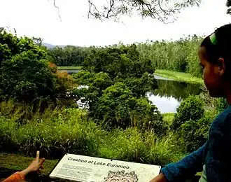 Lake Euramoo (a.k.a. Ngimun & Nuta) is a shallow dumbbell-shaped volcanic crater lake (a maar) in Danbulla, Tablelands Region, Far North Queensland, Australia.[1] It was formed about 23,000 years ago[2] by two massive explosions from groundwater superheating.
