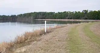 Lake Hico was a cooling pond reservoir built on 16th section school land in Jackson, Mississippi, in the 1950s. Its primary purpose was to provide water for the adjacent Rex Brown Plant, which generates electricity with steam. Initially, Lake Hico was open to the public for recreation. The lake was closed to the public in the late 1960s, along with the public swimming pools in Jackson, due to racial prejudices preventing peaceful integration of public swimming holes.[2] Lake Hico was built as a cooling lake for the Rex Brown Electric Generating complex. Part of the agreement with the Hinds County board of supervisors was to have a public recreation lake and a lake for the intake and the exhaust of water for cooling for the generators. Thus the two lakes. It was originally built as a fuel oil based generating system but was later converted to natural gas when oil got so expensive in the 1970’s. The reasons why it was finally closed to the public were 1- the Barnett Reservoir opened and most people who had formerly used the lake went there and 2- the liability costs to MP&L skyrocketed after there was a couple of drownings. The fact that integration of such public spaces was being attempted by some and resisted by others in Jackson, Mississippi at the time is possibly pertinent. The adjacent Hico Park was closed after a lawsuit to integrate that park was filed as late as 1975.[3] The Rex Brown plant was just recently totally dismantled.