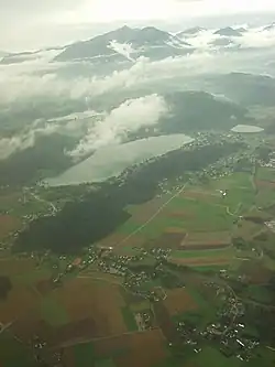 Lake Klopein (German: Klopeiner See, Slovene: Klopinjsko jezero) is a lake near the town of Völkermarkt located within the municipality of Sankt Kanzian in Carinthia, Austria. Lake Klopein is the remaining lake of previously larger lake area, which has spanned over today's Kühnsdorf area. With water temperatures reaching 29 °C it is among the warmest lakes in the Alpine region. [1][2]
